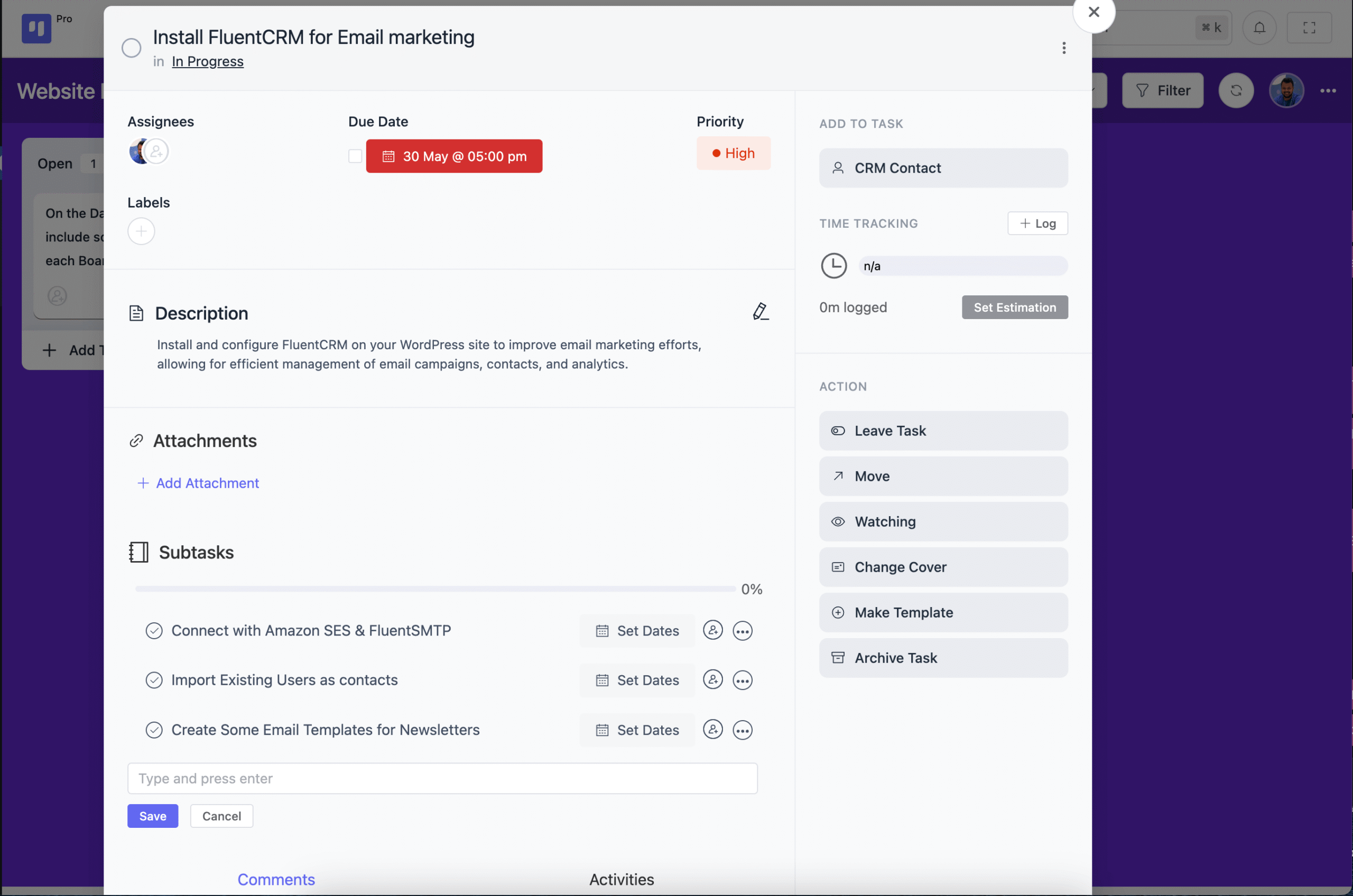 - Add CRM contact to any task and give your team relevant client information